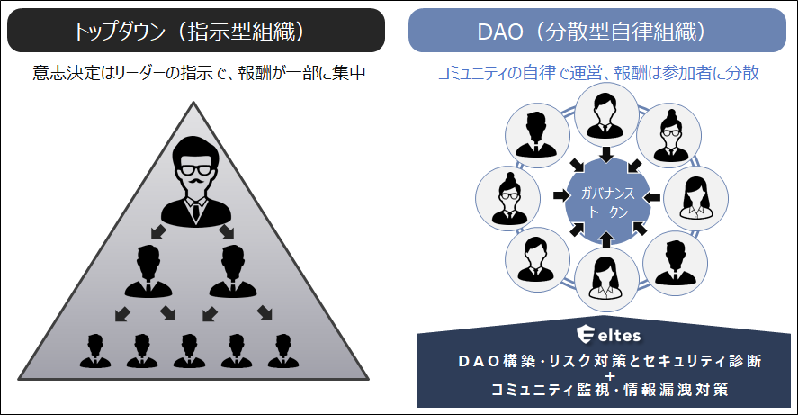 DAOではそのような管理者は存在せず、その組織に属するメンバー同士が自律して働き、組織の意思決定をするのです。